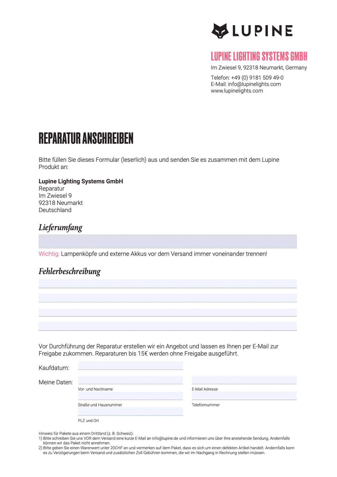 Wir bitten um Verständnis, dass Reparaturen ausschließlich mit ausgefülltem Reparaturschreiben abgewickelt werden können.